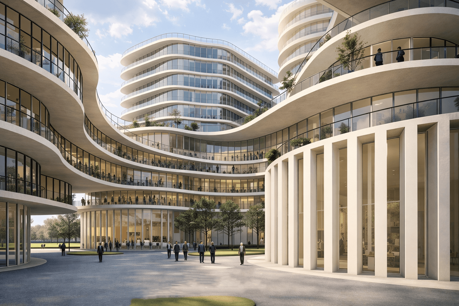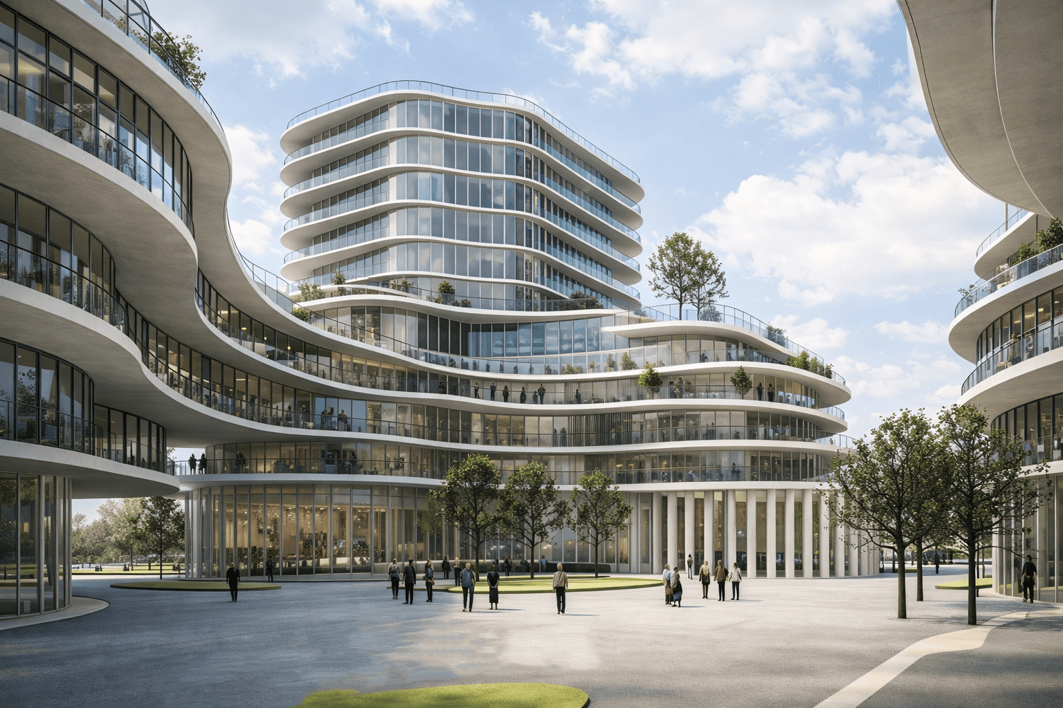 Active Civic Plaza Framed by Fluid Podium Architecture