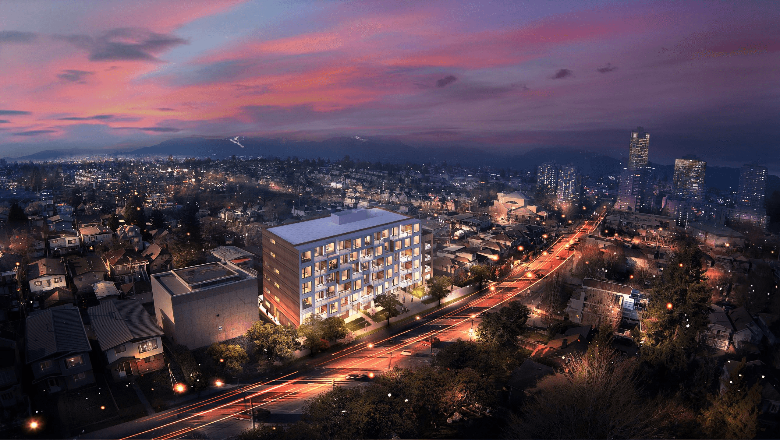This 46-unit multifamily building in Vancouver’s Renfrew–Collingwood neighbourhood is designed with a strong emphasis on spatial efficiency, fabrication logic, and streamlined construction workflow. While not a modular project, the architectural strategy draws from modular principles — using repeatable unit layouts, rationalized façade systems, and coordinated building assemblies to improve constructability, reduce complexity, and support cost-effective delivery. The result is a contemporary residential project that brings clarity, efficiency, and design quality to a growing transit-oriented community.