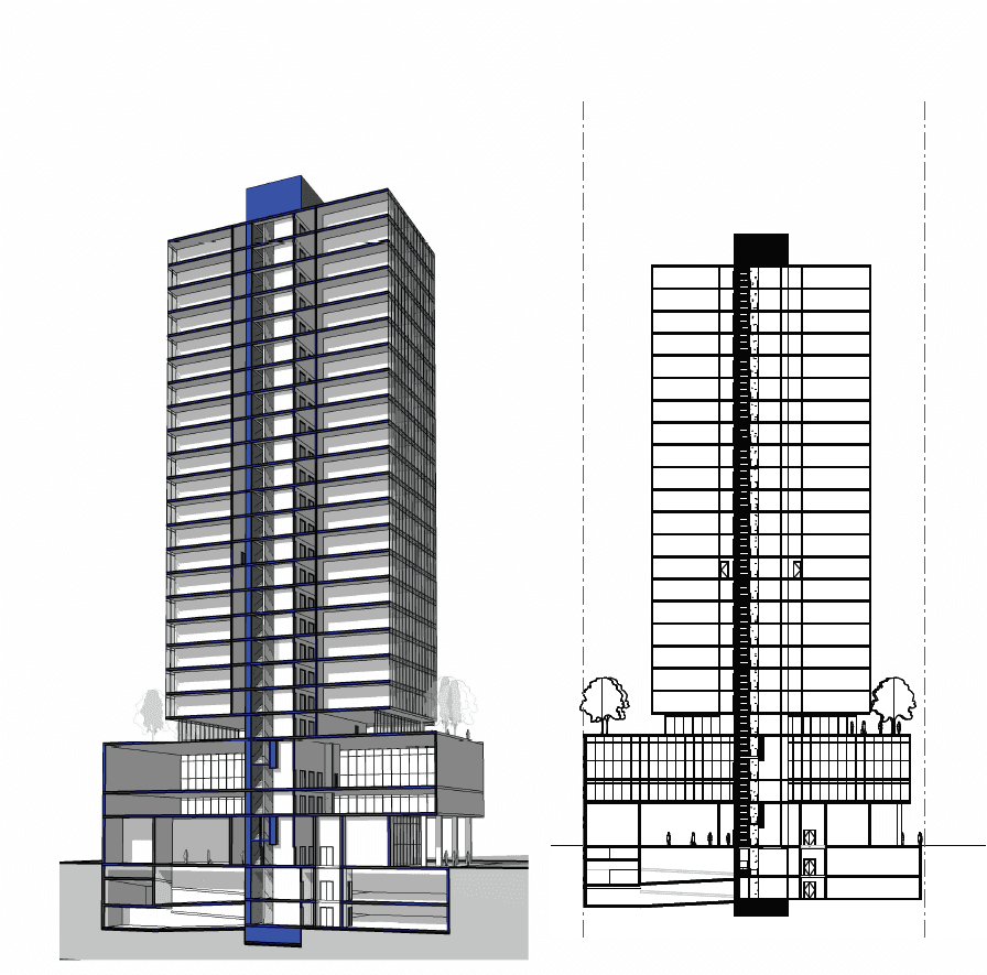 Broadway Hotel is an ongoing hotel development proposal located along Vancouver’s main Broadway corridor. The project begins at the land-assembly stage and is strategically positioned for collaboration with established international hotel brands such as Hilton and Marriott. Set within a dense, commercial urban context, the proposal focuses on creating a compact, efficient hotel typology that aligns with Broadway’s evolving role as a major transit, employment, and hospitality corridor.