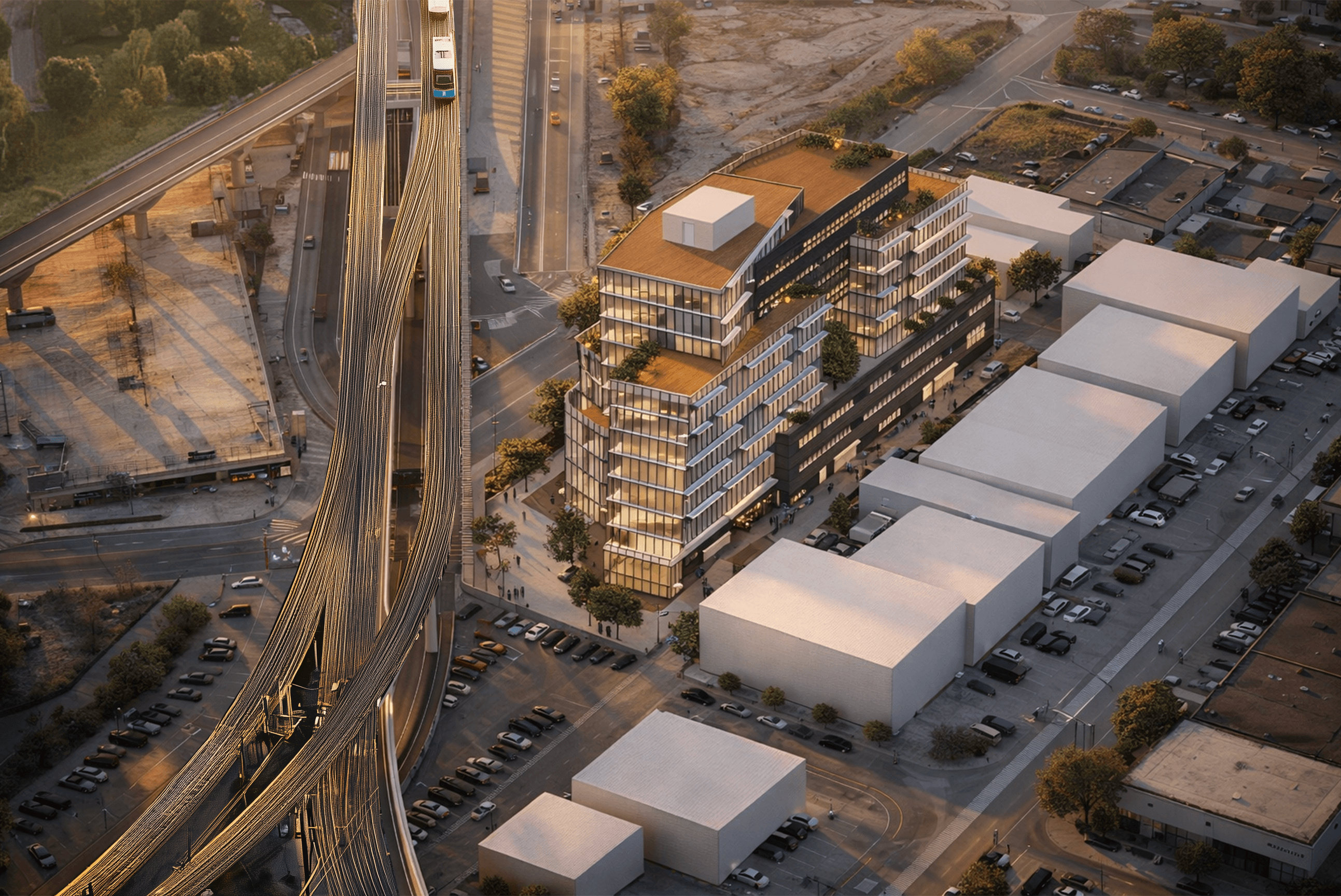 Charles Center is a pioneering mixed-use project beside Bridgeport Station, with a 12-storey commercial base and an upper “digital tower” conceived as a virtual extension aligned with the Meta-origin universe. While the physical height is limited, the project imagines a digital skyline beyond the 12-storey cap, offering remote-work environments that blend virtual and physical experience. Originating from the social shifts of the COVID era, the design expresses a sense of speed and technological momentum, reflected through its dynamic exterior form.