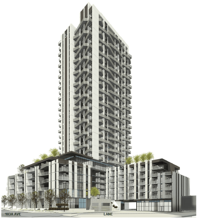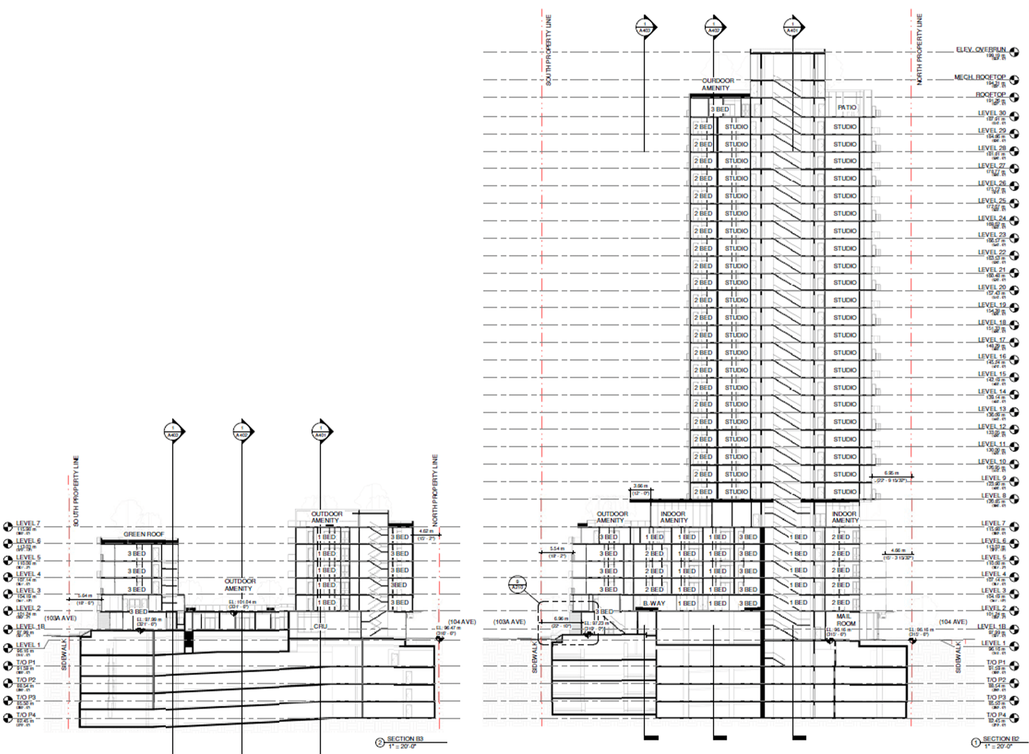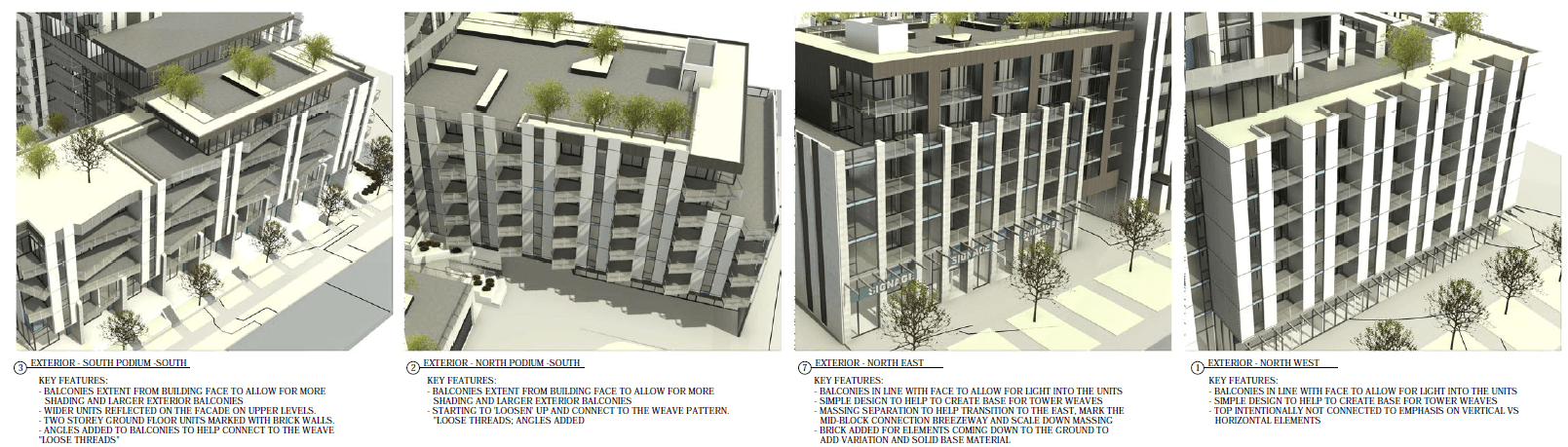 The project showcases the ability to elevate development potential—expanding a 26-storey concept into a 30-storey mixed-use tower and increasing density from 3.5 to 5.6 FSR through strategic alignment with housing policy, transit-oriented guidelines, and urban design incentives. The refined massing enhances feasibility and long-term value while remaining contextually appropriate. A key design feature is the adaptive balcony system, with each façade tailored for orientation, privacy, shading, and livability. These shifts create a woven vertical pattern that gives the tower a distinct identity rooted in both performance and architectural expression.