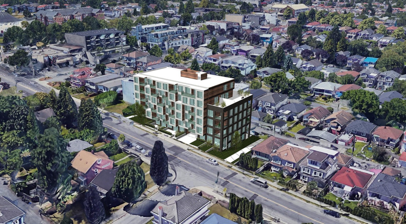 This 46-unit multifamily building in Vancouver’s Renfrew–Collingwood neighbourhood is designed with a strong emphasis on spatial efficiency, fabrication logic, and streamlined construction workflow. While not a modular project, the architectural strategy draws from modular principles — using repeatable unit layouts, rationalized façade systems, and coordinated building assemblies to improve constructability, reduce complexity, and support cost-effective delivery. The result is a contemporary residential project that brings clarity, efficiency, and design quality to a growing transit-oriented community.