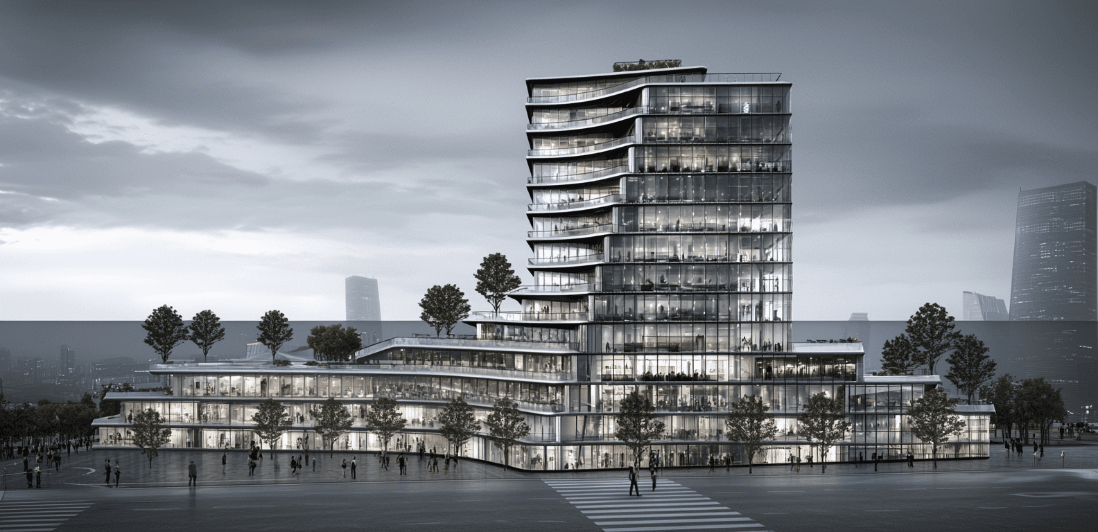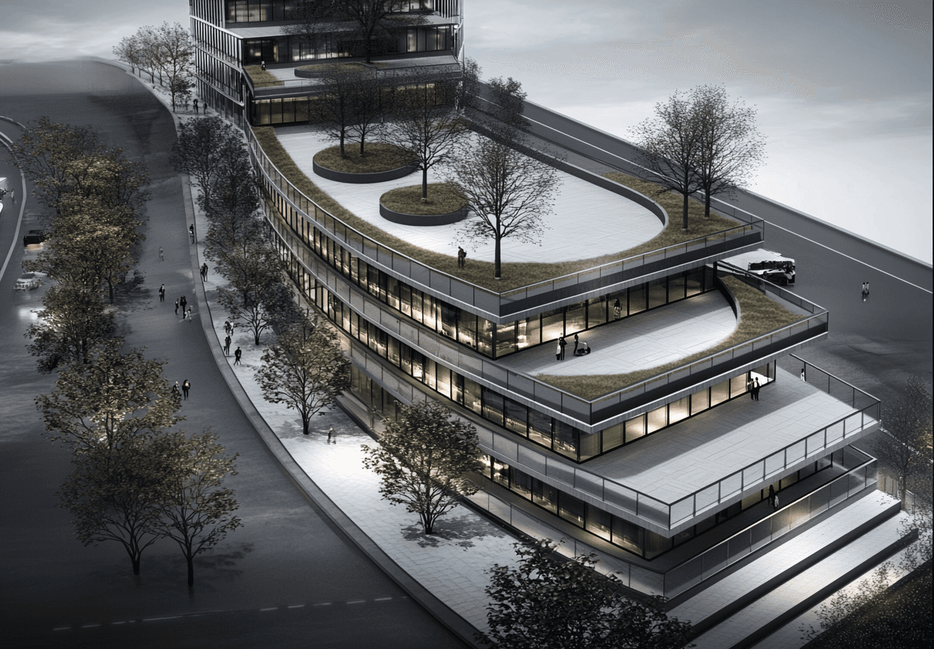 W 14th is a next-generation senior community designed around wellbeing, connection, and access to nature. A stepped podium forms a series of expansive outdoor terraces, creating generous communal gardens, walking loops, and social spaces above grade. The tower rises with a soft, curving expression and continuous glazing, bringing daylight deep into the suites and framing open city views. The architecture blends residential warmth with an urban civic presence, creating a calm, uplifting environment that supports aging in place.